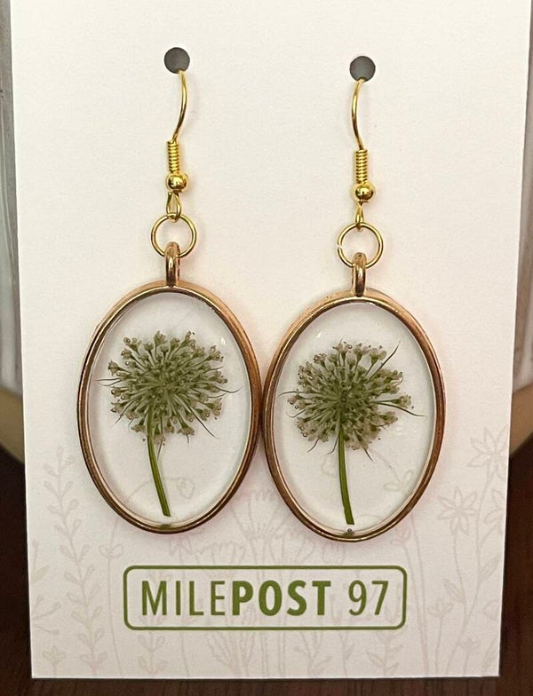 Pressed Queen Anne's Lace flower arranged in resin.