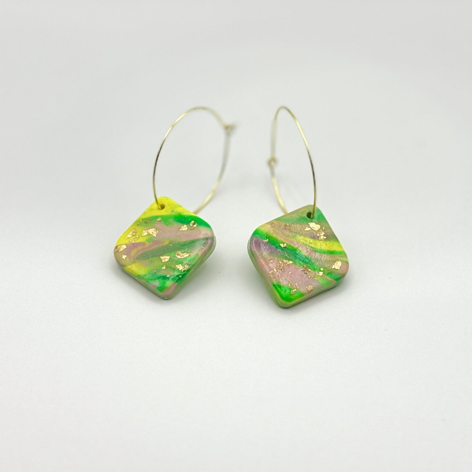Yellow, Pink & Green Marble custom-crafted earrings.