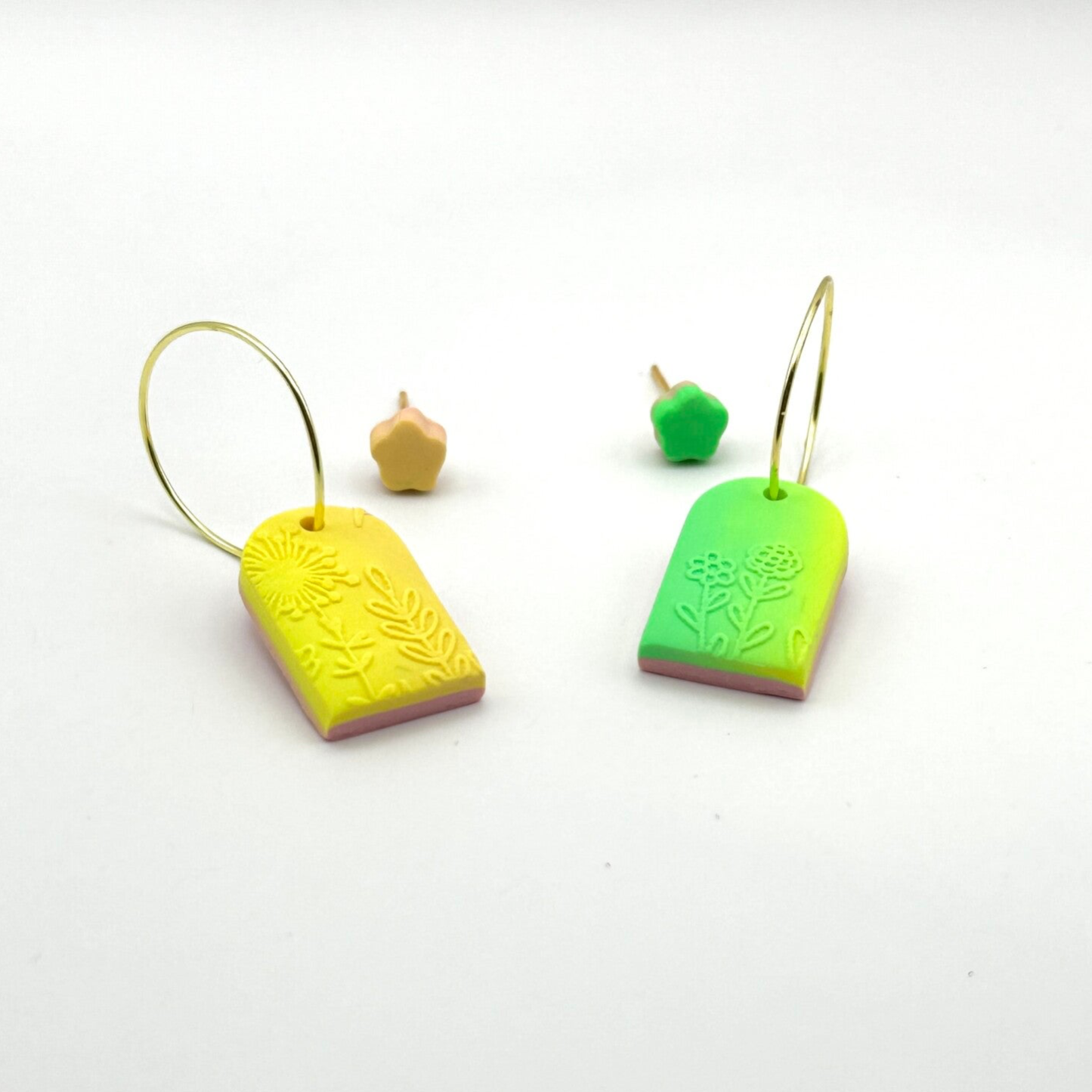 Yellow, Pink & Green Wildflower pattern custom-crafted earrings.
