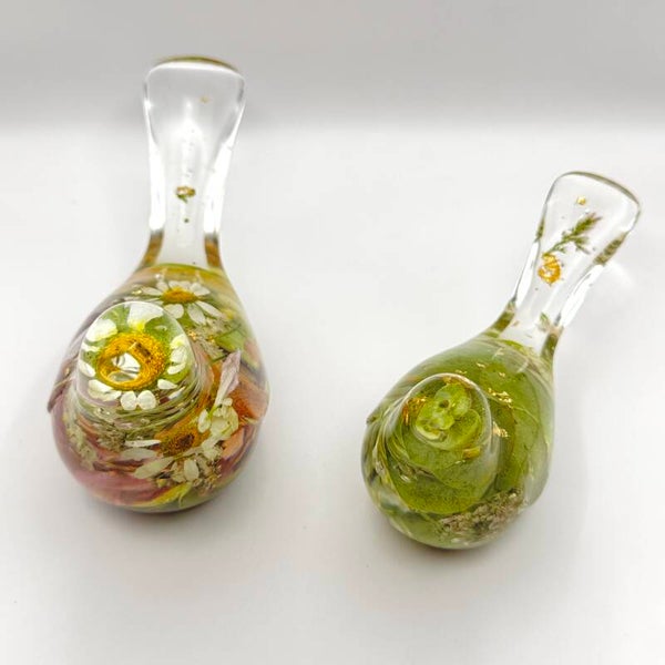 Delicately crafted resin bird figures, designed with care and precision. These elegant, crystal-clear birds are made from high-quality resin and beautifully accented with dried flowers and subtle metallic flakes.