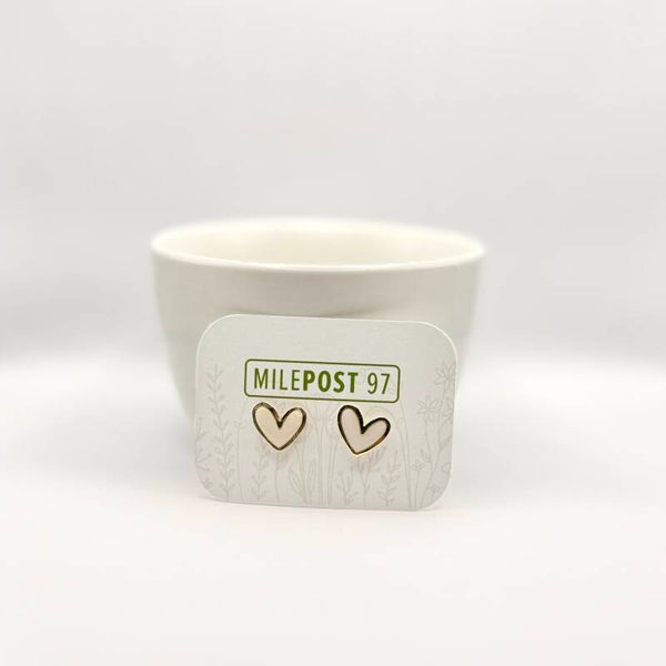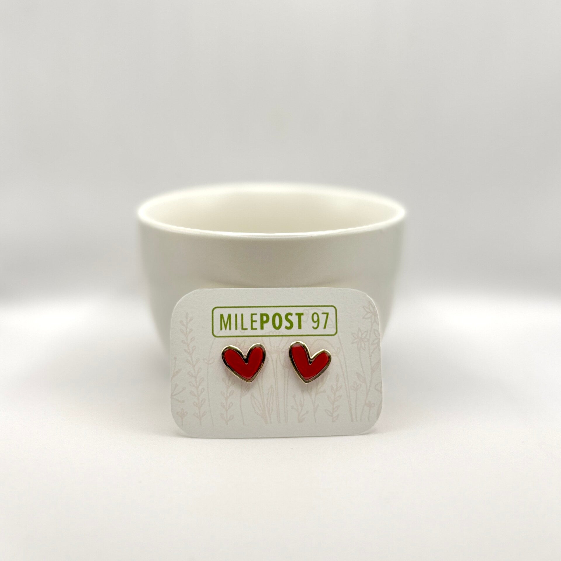 Custom-crafted Valentine Clay earrings embedded in 18K Gold Plated Brass Heart and sealed with resin.