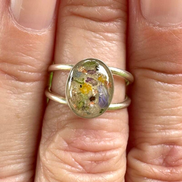 Exquisitely crafted memorial rings designed using cherished flowers from anniversaries, birthdays, or in remembrance of a loved one or pet.