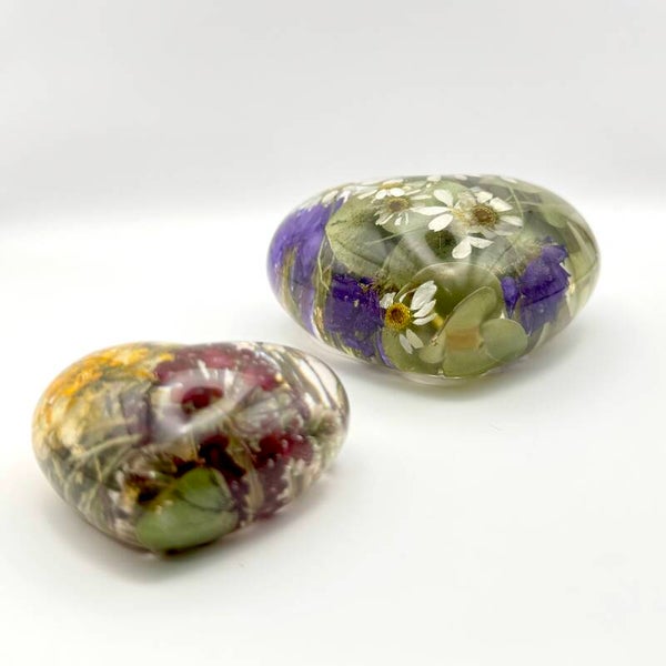 While I understand how important it is to create a beautiful and meaningful piece for you, please note that each item is handcrafted, and variations in the curing process may result in small imperfections or tiny bubbles. These little variations are part of what makes your keepsake truly one of a kind. To help preserve the flower colors and keep the resin clear over time, I recommend keeping your piece out of direct sunlight.