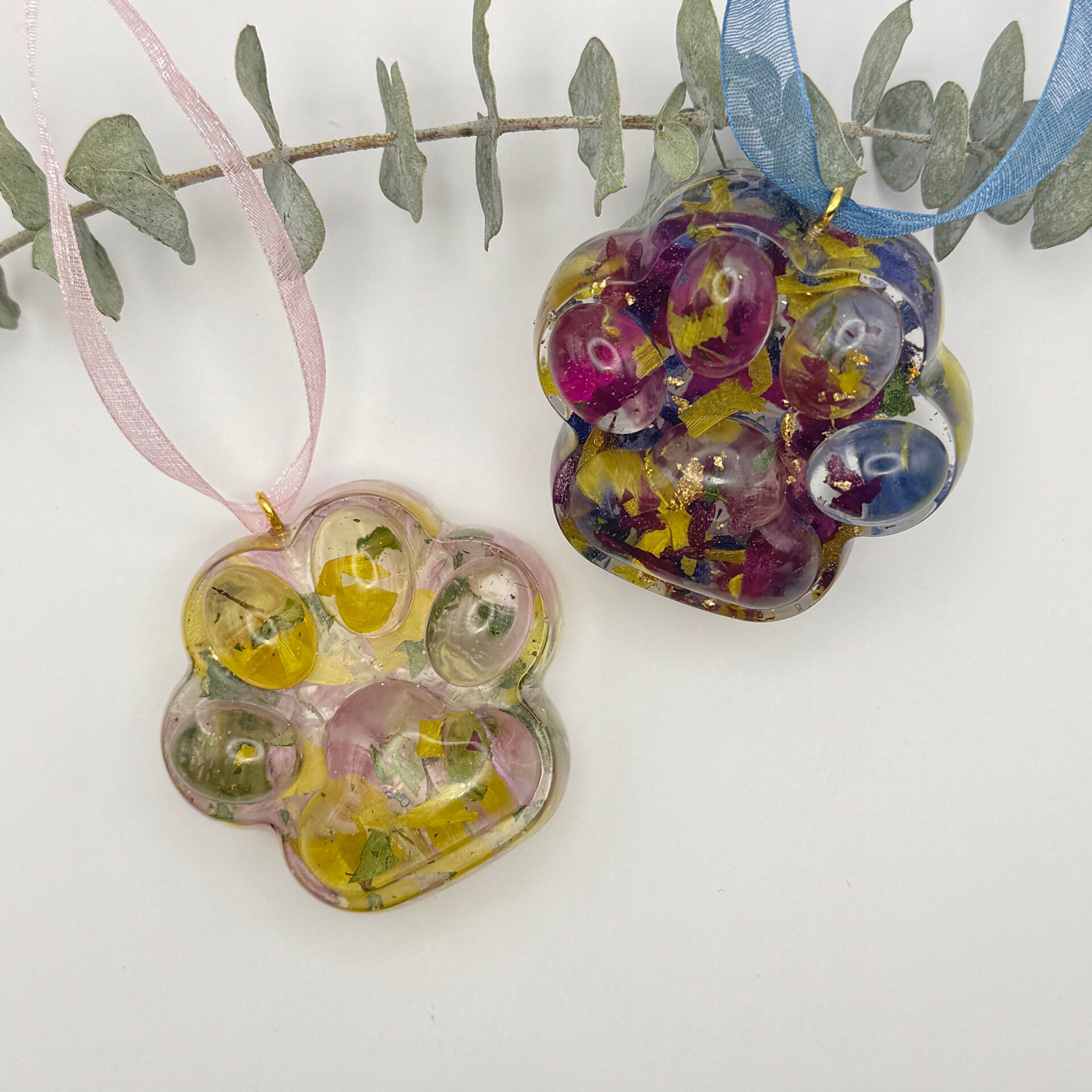 Floral Resin Paw Keepsake: Flower Preservation, Cremains or Pet Loss Ornament