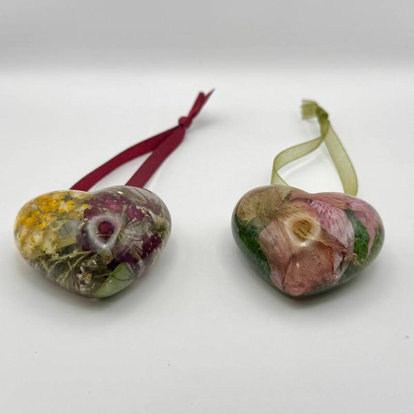 Floral Resin Heart Memorial Keepsake: Funeral Flower Preservation, Cremains or Pet Loss Ornament
